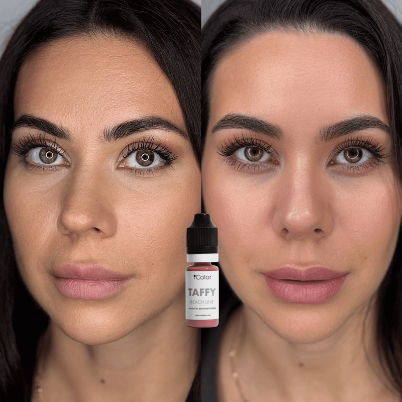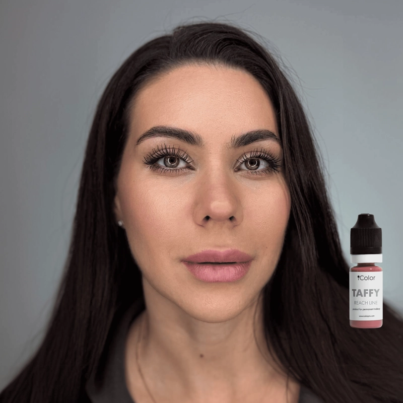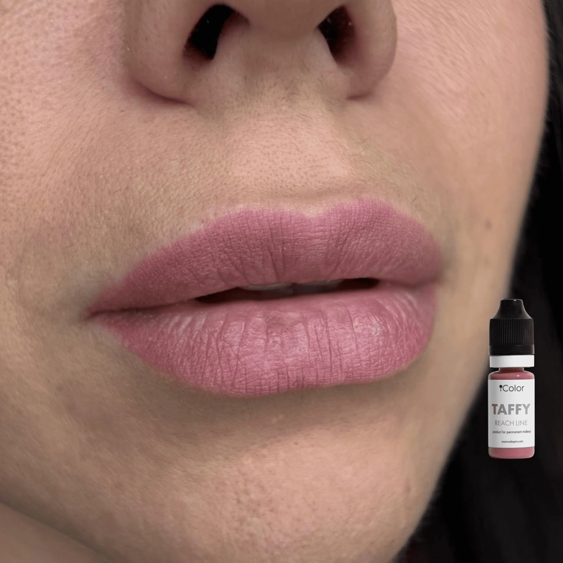 Taffy – pigmento universale per labbra dai toni freddi, con una saturazione sufficiente a ripristinare il bordo naturale delle labbra, riempire le zone vuote e coprire le zone colpite da herpes o cicatrici.